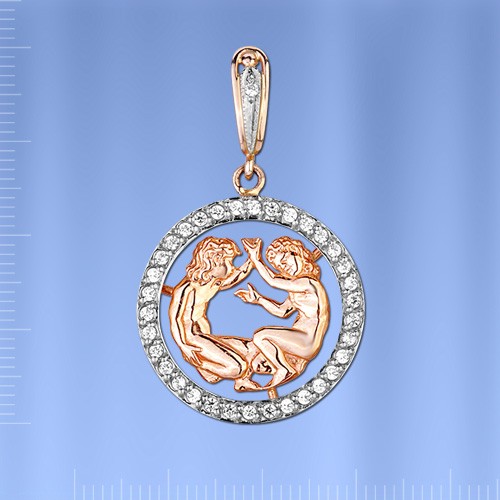 Знак Зодиака "Близнецы " из красного и белого золота 585° украшенная сверкающими фианитами