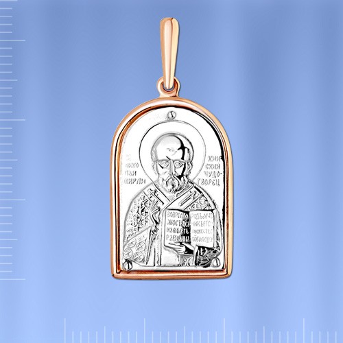 белого золота 585°. На основании гравировка изображения Святого Николя Чудотворца. На обратной стороне подвески надпись "По вере вашей да будет вам". Святитель Николай, архиепископ Мир Ликийских, чудотворец, прославился как великий угодник Божий. Особо он почитается в России как скорый помощник в самых, казалось бы, безнадежных и неразрешимых проблемах - и духовных и житейских. В верхней части подвески имеется колечко для цепочки.