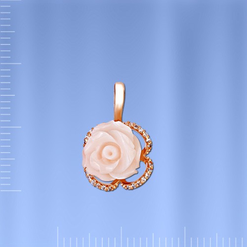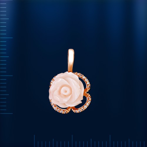 красного золота 585° украшена резным бледно - розовым кораллом в виде розочки!