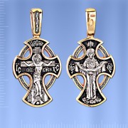 Высококачественный и высокохудожественный рельефный литой массивный нательный крест ручной работы из чернёного серебра 925 пробы с позолотой 999 пробы 5 микрон