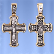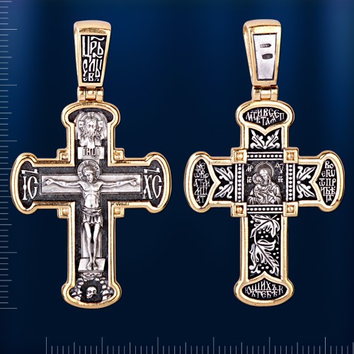 На лицевой стороне креста изображено Распятие Господа нашего Иисуса Христа. На обороте — Феодоровская икона Божией Матери. Она почитается как покровительница православной государственности, также ей молятся об удачном замужестве и о детях. Вокруг образа помещена молитва: «Мати всепетая, не отврати лица Твоего от прибегающих к Тебе»