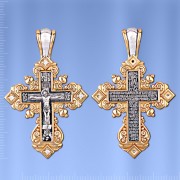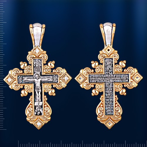 Примерные размеры - высота крестика с ушком 50.0 мм, ширина 33.0 мм, толщина 2.0 мм. Размер ушка под цепочку - 8.0 х 5.0 мм. Вставка : 4 сверкающих фианита ¢ 2.0 мм