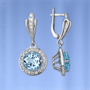 Вставки: 2 голубого натурального топаза ¢ 10.0 мм, сверкающие фианиты ¢ 1.5 мм