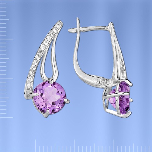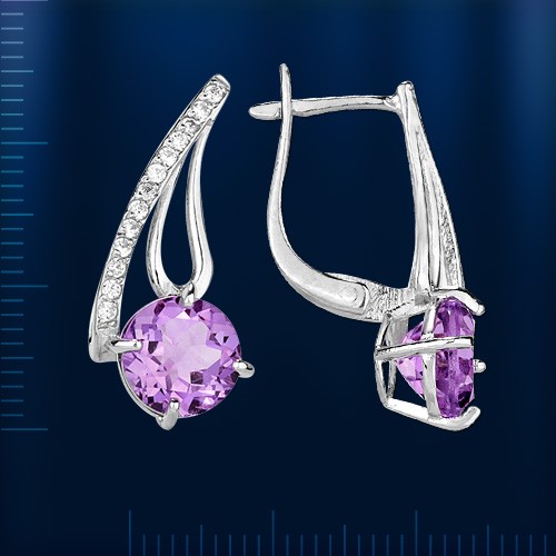Серебро родировано. Родий не темнеет на воздухе и поэтому родирование применяется для защиты серебряных изделий от потемнения, а также в ювелирном производстве его используют в качестве защитно-декоративного покрытия. Это самый яркий и твердый металл из всей платиновой группы Серьги с аметистами – это очень необычный и изящный вариант украшения, который вы смело можете носить каждый день. Более того, специалисты рекомендуют одевать этот камень именно днем, такт как при солнечном свете Аметист способен порадовать и заворожить вас всеми своими необыкновенными оттенками: от нежного сиреневого до темно-фиолетового.