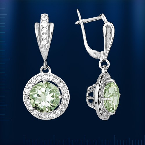 Вставки: 2 зеленых Аметиста ¢ 10.0 мм, сверкающие фианиты ¢ 1.0 мм