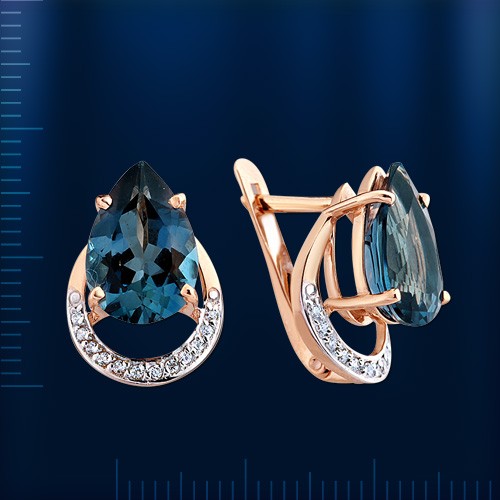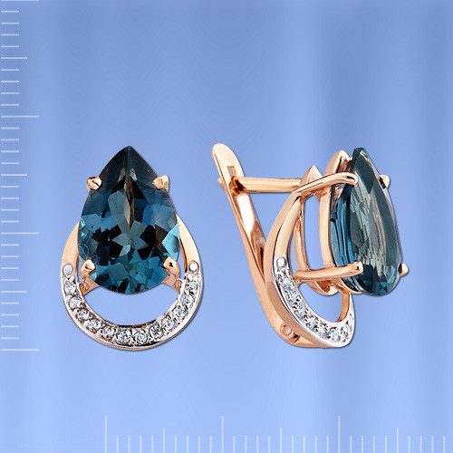 Вставки: 2 лондонского топаза (груша 12.0 х 8.0 мм 1.396 ct), 24 сверкающих фианита ¢ 1.0 мм 0.042