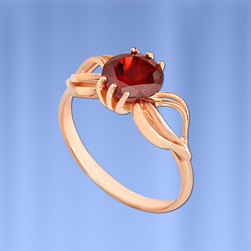 Der Ring ist aus russischen Rotgold 585° mit Granat (¢ 8.0 mm 0.445)