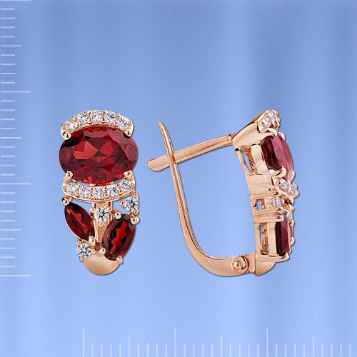 Вставки: 2 граната (нат. мр. 5.0 х 2.5 мм 0.078ct), 2 граната (нат. овал 8.0 х 6.0 мм 0.594 ct), 2 граната (нат. овал 5.0 х 3.0 мм 0.116 ct), 6 фианита ¢ 1.5 мм 0.036, 20