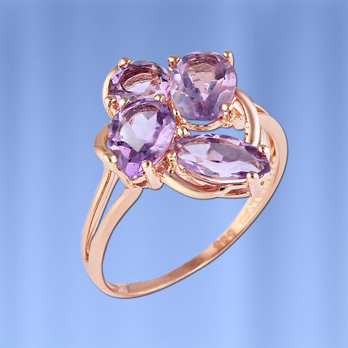 Аметист имеет необыкновенный фиолетовый цвет, насыщенность которого варьируется от бледно – фиолетового, голубоватого оттенка до темно-фиолетового, с красноватым оттенком. Аметист, сам по себе встречающийся в природе довольно часто, является полудрагоценным камнем, однако в оправе из золота он способен заиграть по-новому, удивляя и восхищая своим глубоким, таинственным фиолетовым цветом. Кольцо из этого чудесного яркого камня станет для вас оригинальным и модным украшением, которое, без сомнения, будет притягивать восторженные взгляды окружающих
