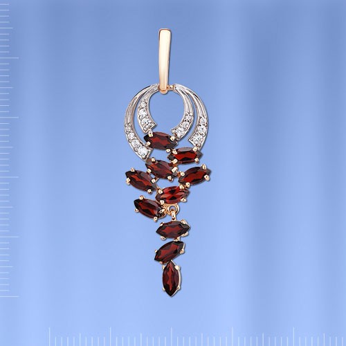 белого золота 585°, украшена 10 ю сочным гранатами (6.0 х 3.0 мм) и сверкающими