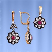 Вставка : 2 ярких сочных фианита цвета рубина (¢ 4.0 мм), 18 сверкающих фианита ¢ 2.5 мм, 6 сверкающих