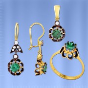 Вставка : 2 ярких сочных фианита цвета изумруда (¢ 6.0 мм), 4 сверкающих фианита ¢ 2.0 мм, 8 сверкающих