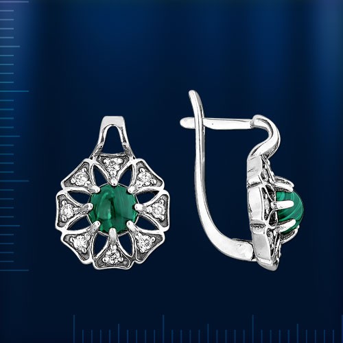 Besatz : 2 Malachit ¢ 6.0 mm., 16 Fianiten ¢ 1.0 mm
