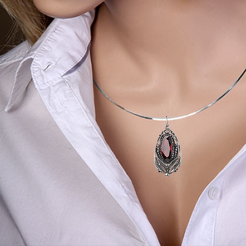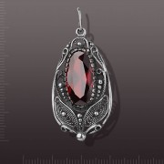 Кулон "Графиня" из чернёного серебра 925 пробы с красивой крупной вставкой синтетического граната!