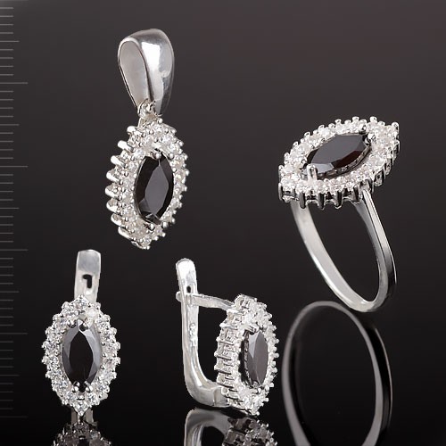Вставка : 2 черных фианита 10.0 х 5.0 мм, сверкающие
