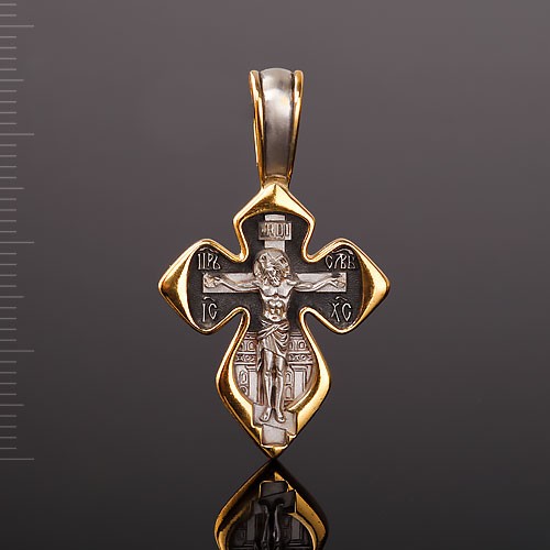 Распятие Христово. "Иисусова молитва" Православный крест На лицевой стороне креста изображено Распятие Господа Иисуса Христа. На обороте написана молитва-обращение к Иисусу Христу с просьбой о помиловании, которая называется Иисусова молитва: «Господи, Иисусе Христе, Сыне Божий, помилуй мя, грешнаго». Это одна из главных христианских молитв, неотъемлемая часть жизни каждого верующего.