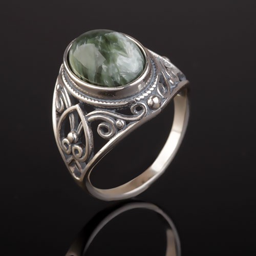 Шикарное кольцо из серебра 925 пробы с крупной вставкой нежного синтетического клинохлора!