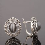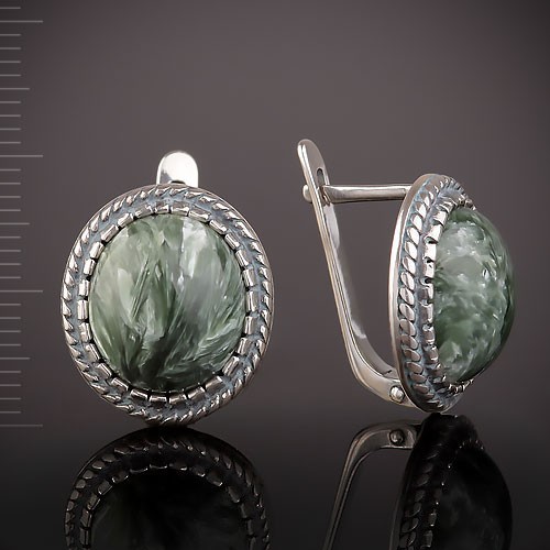 Шикарные серьги из чернёного серебра 925 пробы с крупной вставкой синтетического клинохлора! Всмотритесь в замысловатые узоры клинохлора. Это все равно, что смотреть в глаза любимого человека или в морскую глубину – очень просто утонуть в бездонных просторах!