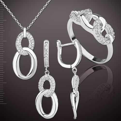 Набор состоит из кольца, подвески на цепочке и серег !