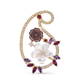 Шикарный кулон - отличный аксессуар для любого типа внешности стильной леди! Этот кулон с полудрагоценными камнями и перламутром - истинное воплощение женственности. Перламутр мягок и убедителен, оправляющее его золото полно решимости и гармонии. В этом украшении великолепно обыгран каждый цветовой контраст, каждый элемент. Белые и розовые цветы переливаются натуральным светом!