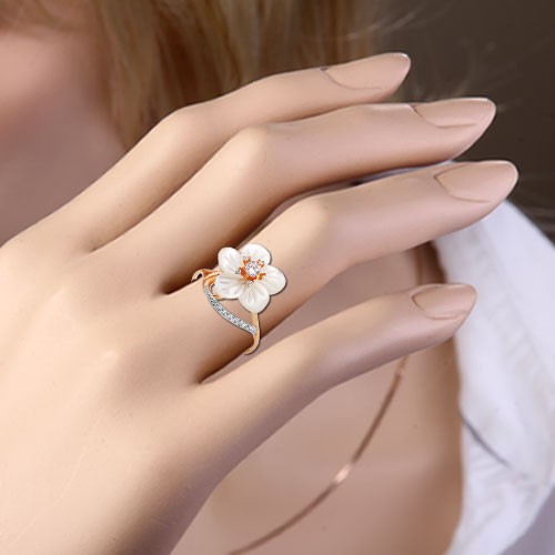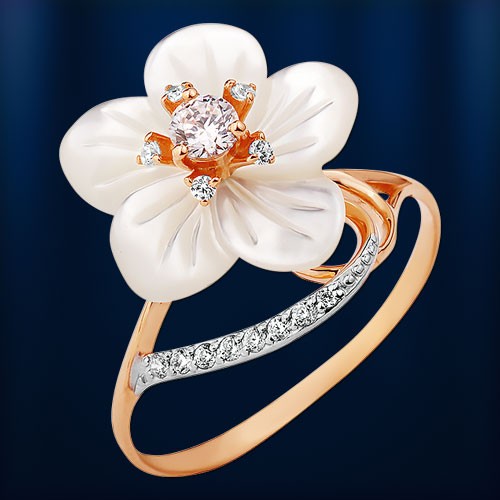 Очаровательное нежное кольцо "Ромашка" из русского красного и белого золота 585 пробы. Это украшение отвечает самым высоким требованиям, безупречным мастерством исполнения, радужным переливанием перламутра, игрой фианитов, модной формой!