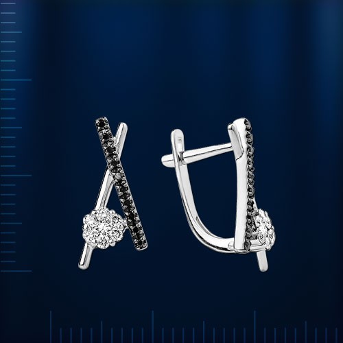 бриллиантами ! Особенность этим серьгам придаёт так же частичное чернение деталей, нанесённое на золото, с помощью новых технологий.
