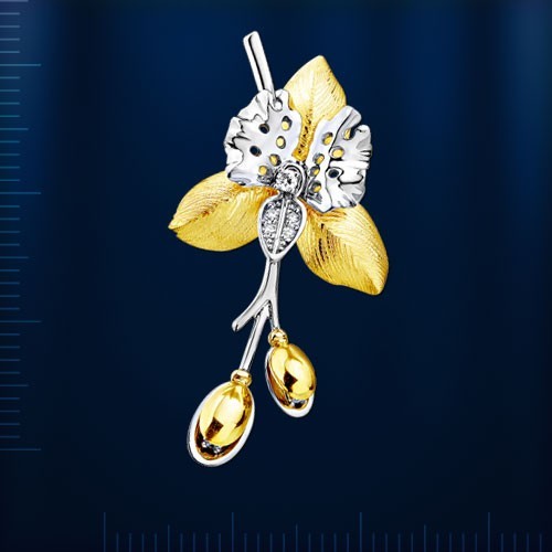Вставки: 4 бриллианта Кр17 0,013 ct 2/3А ; 1 бриллиант Кр 57 0,014 ct 4/5А кр- 57 ; 2 бриллианта 0,02 ct 4/5А Кр- 57
