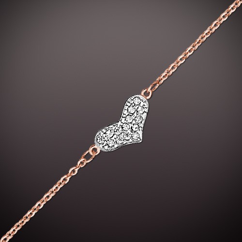 красного золота 585 пробы с декоративной вставкой сердечка, украшенного сверкающими
