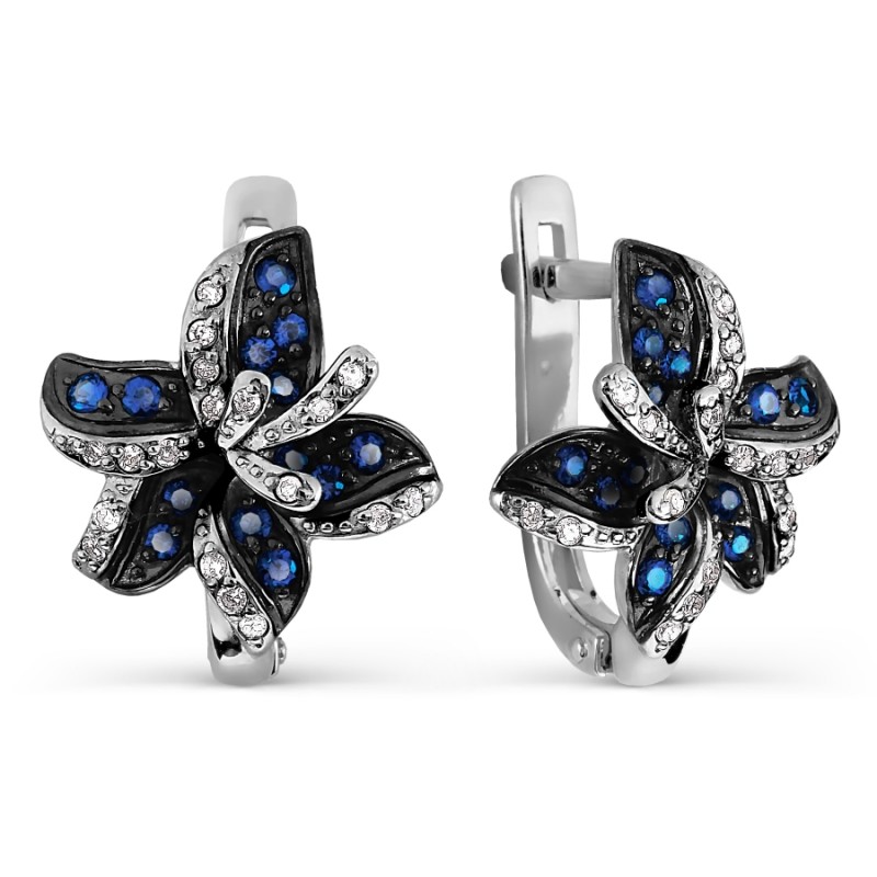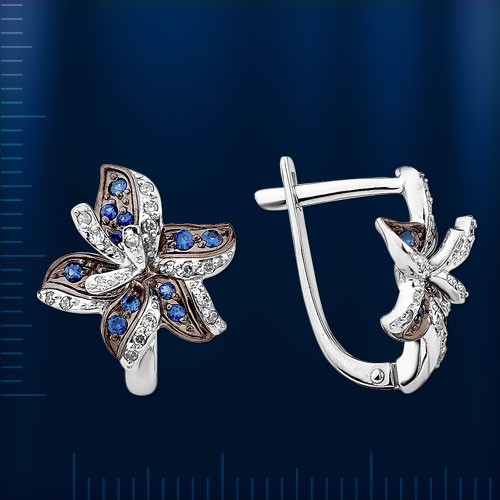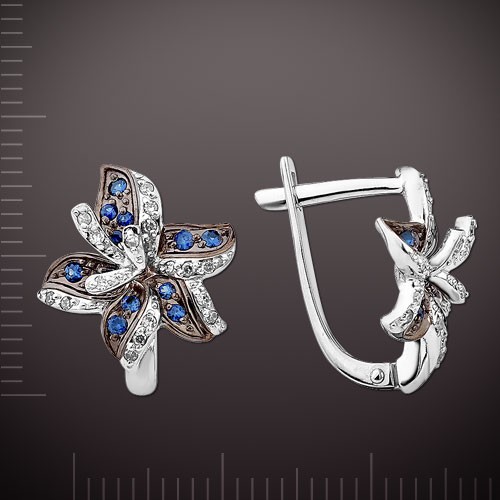 сапфирами! Особенность этим серьгам придаёт так же частичное чернение деталей, нанесённое на золото, с помощью новых технологий.