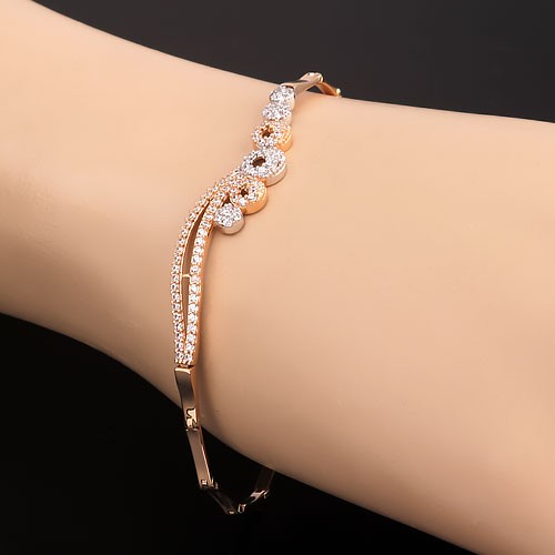 Изящный браслет выполнен из красного и белого русского золота 585-й пробы со сверкающими фианитами!