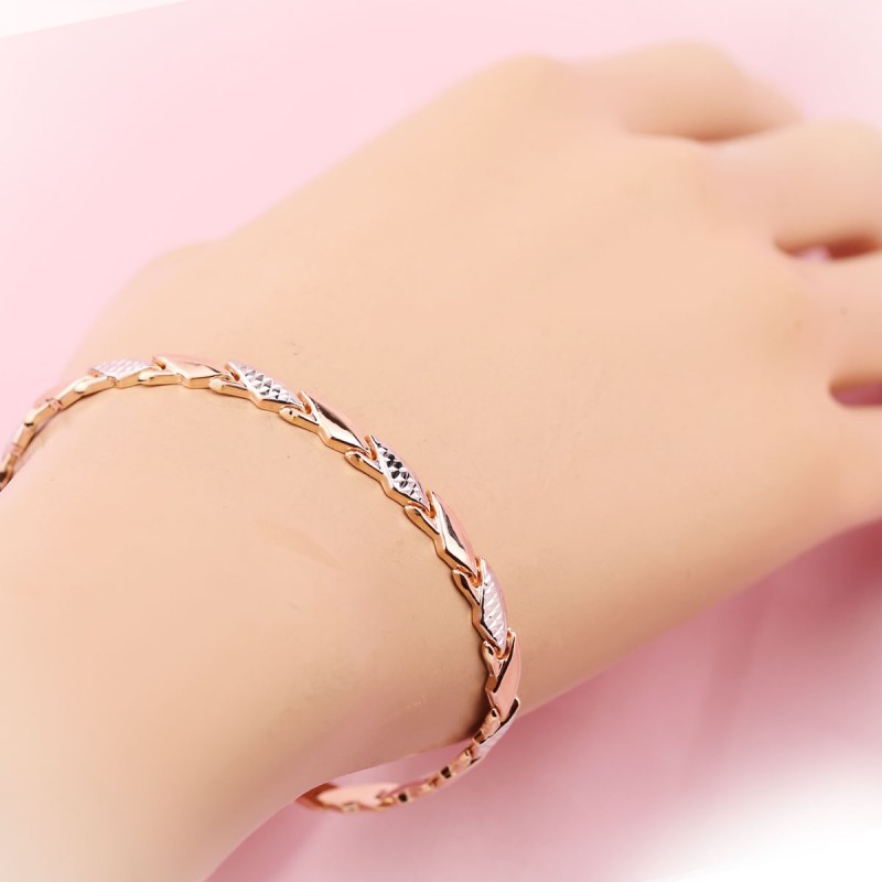 красного золота 585-й пробы. Внутренняя часть браслета закрытая, ровная и блестящая. Браслет превосходно украсит как ручку солидной дамы, так и молодой женщины. Браслеты из золота создают необходимый акцент в образе, и привлекают внимание к богатству и роскоши аксессуаров, ведь золото – это красиво, стильно, шикарно, дорого. Данное изделие подчеркнёт Вашу высокую утонченность и глубокое чувство стиля.