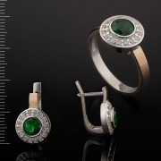 Вставка : 2 ярко - зеленых фианита ¢ 6.0 мм, сверкающие