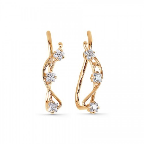 Серьги из красного золота 585 пробы с бесцветными фианитами.