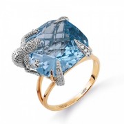 красного золота 585 пробы с огромным натуральным топазам двойной фасеточной ограники Октагон 18,7 карат и со сверкающими бриллиантами.