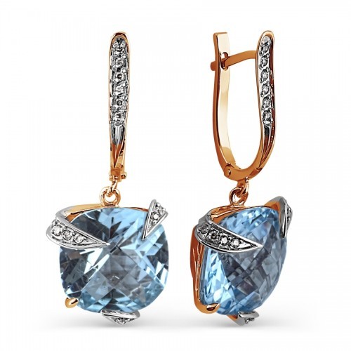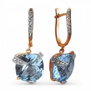 русского золота 585 пробы, украшенные крупными натуральными топазами Ортагон с двойной фасеточной огранкой и со 24 - мя сверкающими бриллиантами.