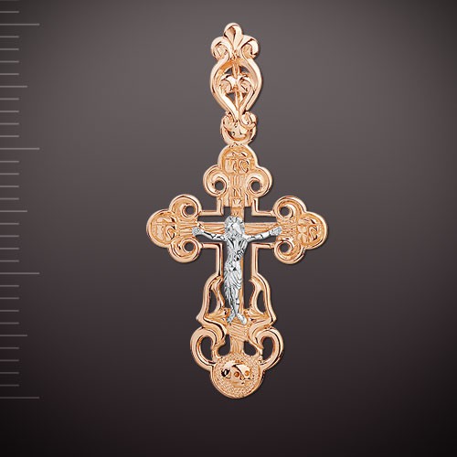 Ширина 15,0 мм, высота с ушком 28,0 мм, внутрении размер ушка 5,0 х 3,0 мм, общая толщина крестика 1,0 мм