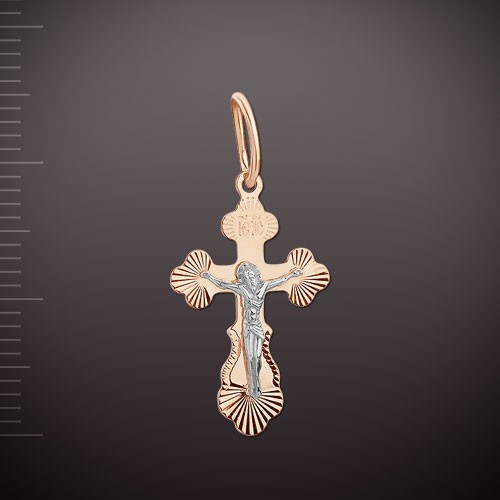 Kreuzanhänger mit Kruzifix Russisches Gold 585 in Deutschland, orthodox. Die Christusfigur besteht aus Weißgold 585, der Kreuz ist aus diamantgeschliffenen