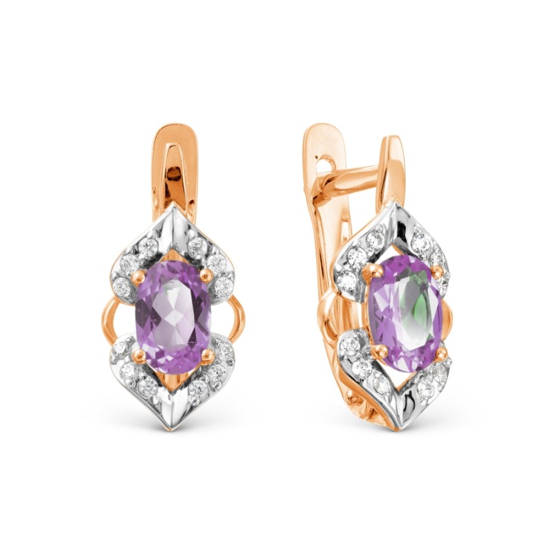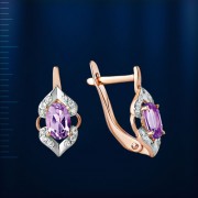 Ohrringe aus Rot/Weißgold 585° verziert mit 2 Amethyst (6.0 x  4.0 mm 0.7), 24 Fianiten ¢ 1.0 mm