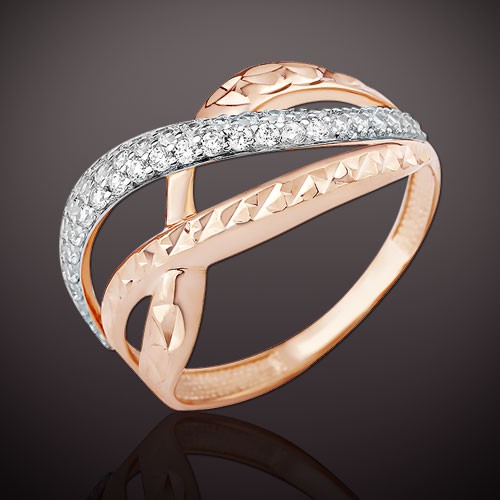 русского золота 585 пробы, комбинированного с белым и украшенно сверкающими