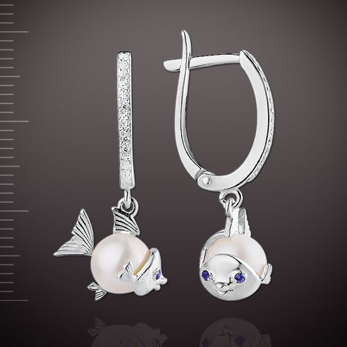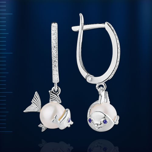 Очаровательные чувственные серьги выполнены из серебра 925 пробы, украшены подвеской в форме забавной рыбки!