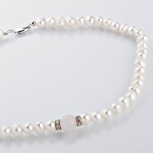 Kette aus Perlen ¢ 8,0 mm, Quarz ¢ 12,0 mm, Fianiten ¢ 3,0 mm