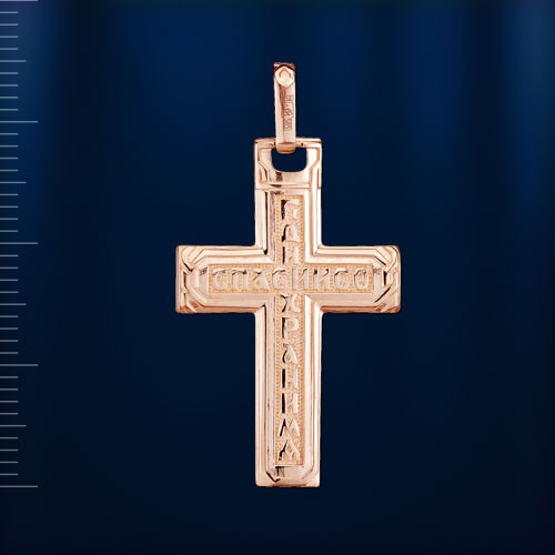 Ширина 18,0 мм, высота с ушком 34,0 мм, общая толщина крестика 1,0 мм
