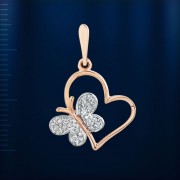 красного золота 585 пробы в форме сердечка, украшена бабочкой из