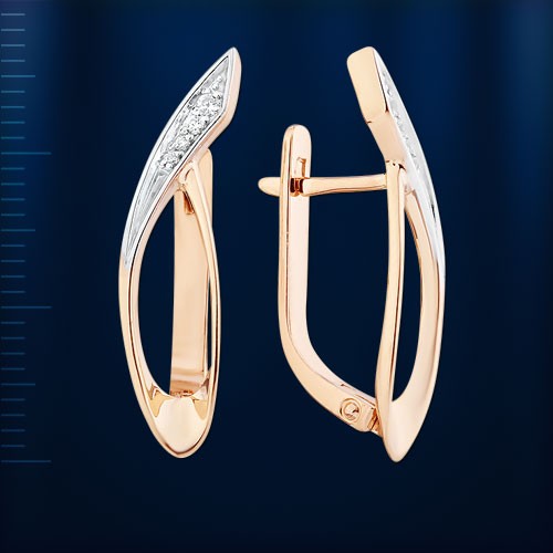 Шикарные золотые серьги выполнены из красного и белого