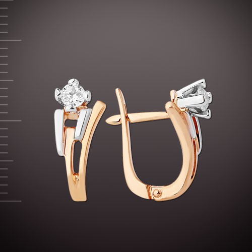 Милые золотые серьги выполнены из красного и белого