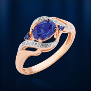 Вставки: 20 бриллиантов Кр17 0,099 ct 2/3А ; 1 сапфир - корунд овал 7.0 х 5.0 мм 1.009, 2 сапфир - корунд ¢ 1.5 мм 0.042