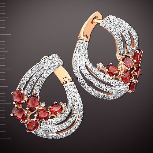 Вставка : 4 граната овал 5.0 х 3.0 мм, 8 граната овал 4.0 х 3.0 мм 1.2 ct, 4 фианита ¢ 1.5 мм, 56