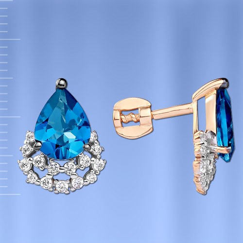 Вставки: 2 лондонских топаза (груша 9.0 х 7.0 мм 2.8 ct),12