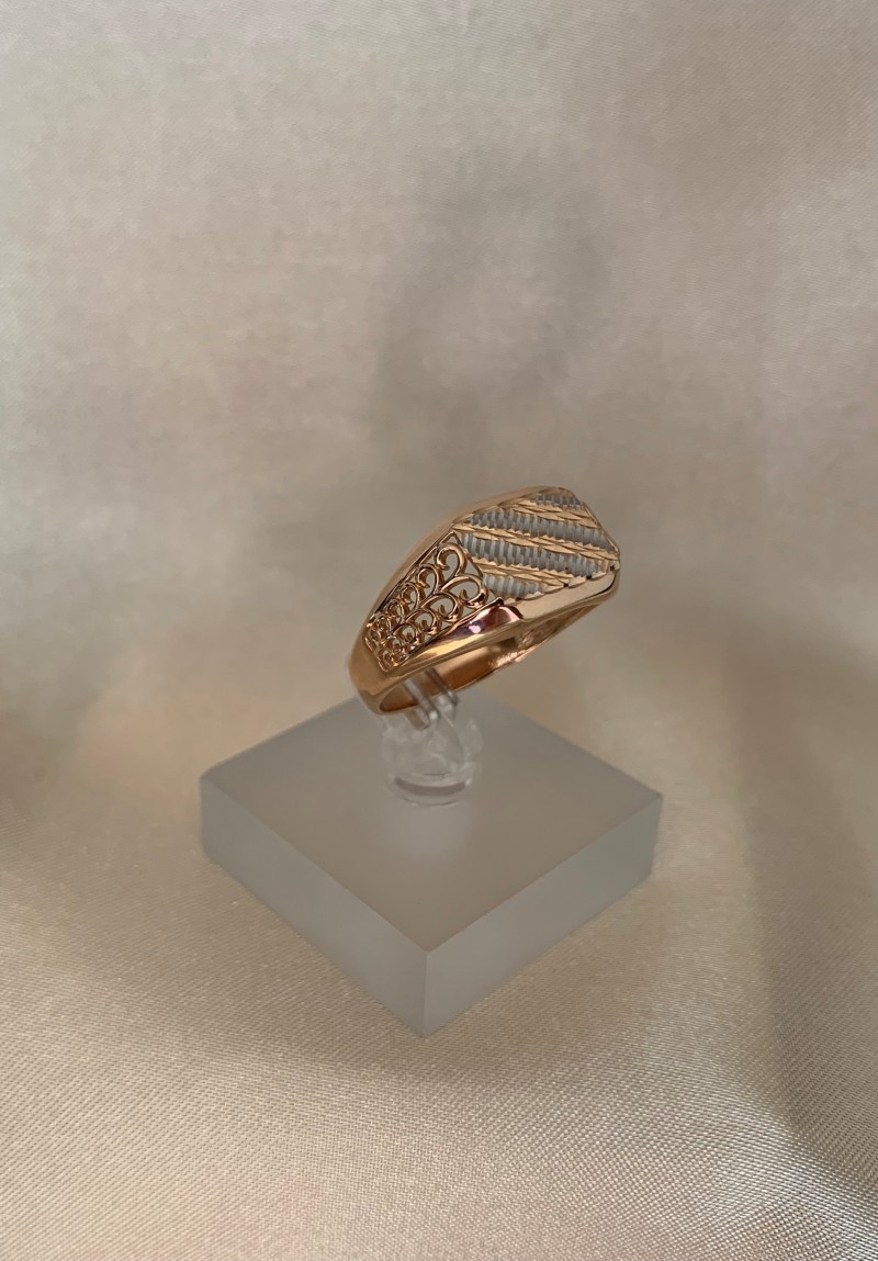 русского золота 585° с алмазной обработкой и родированным покрытием, украшеная филигранью.