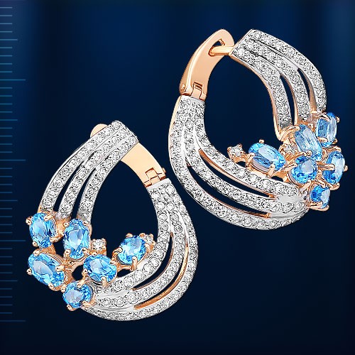 Очаровательные чувственные серьги выполнены из красного русского золота 585° с голубым топазом и сверкающими фианитами!